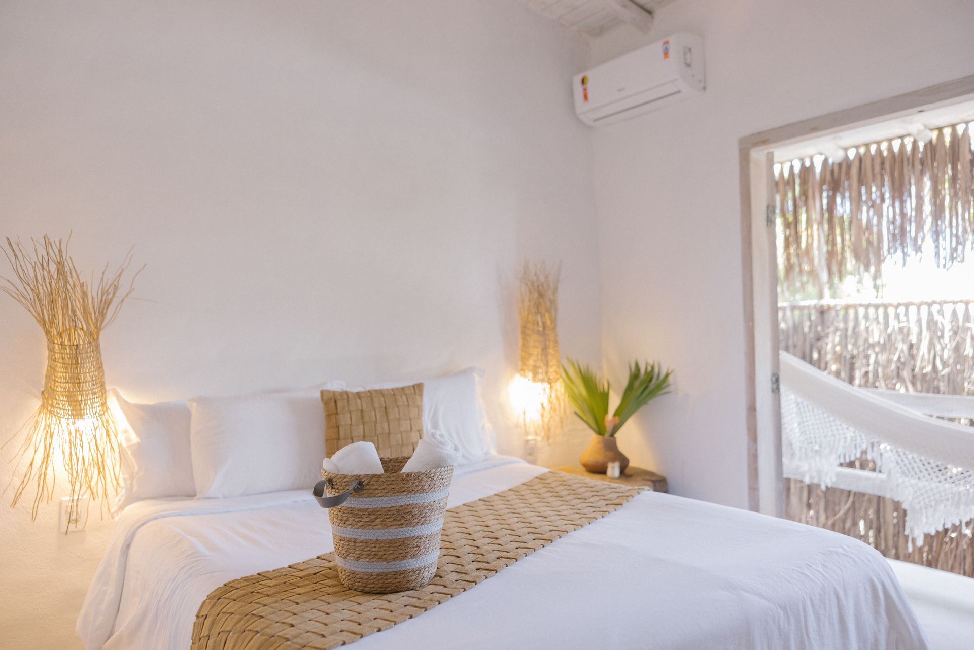 Contamos com 8 suítes exclusivas, cada uma delas equipada com varanda e rede, proporcionando um espaço privado para relaxar.