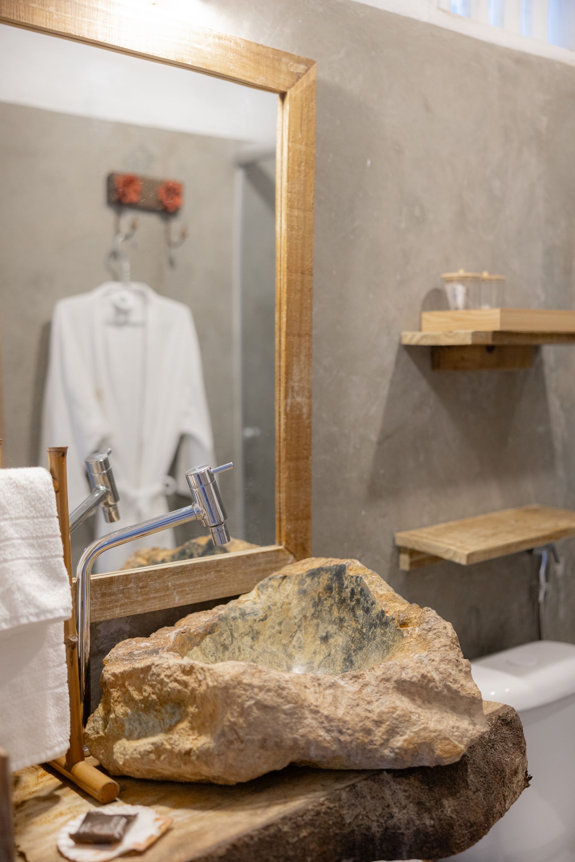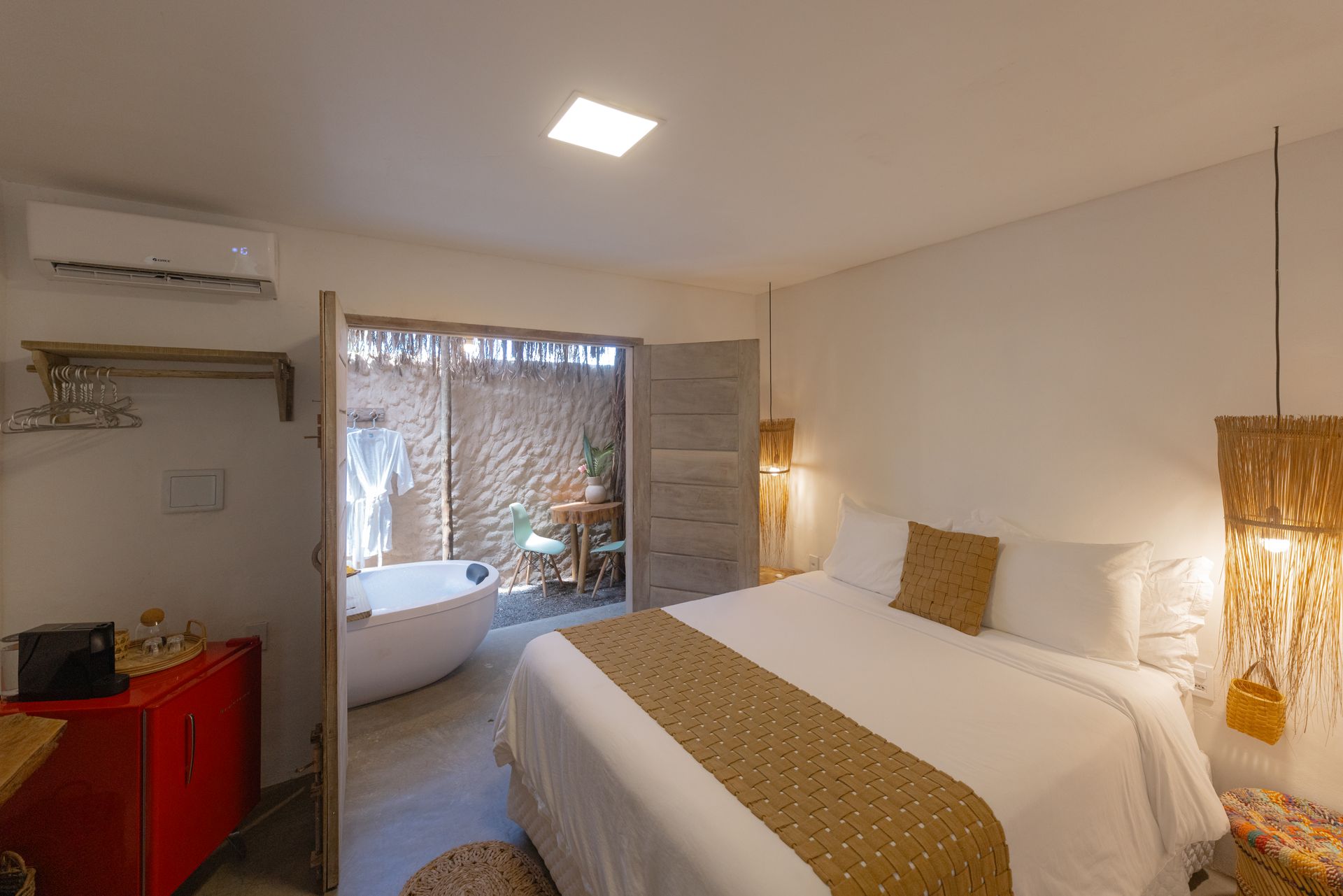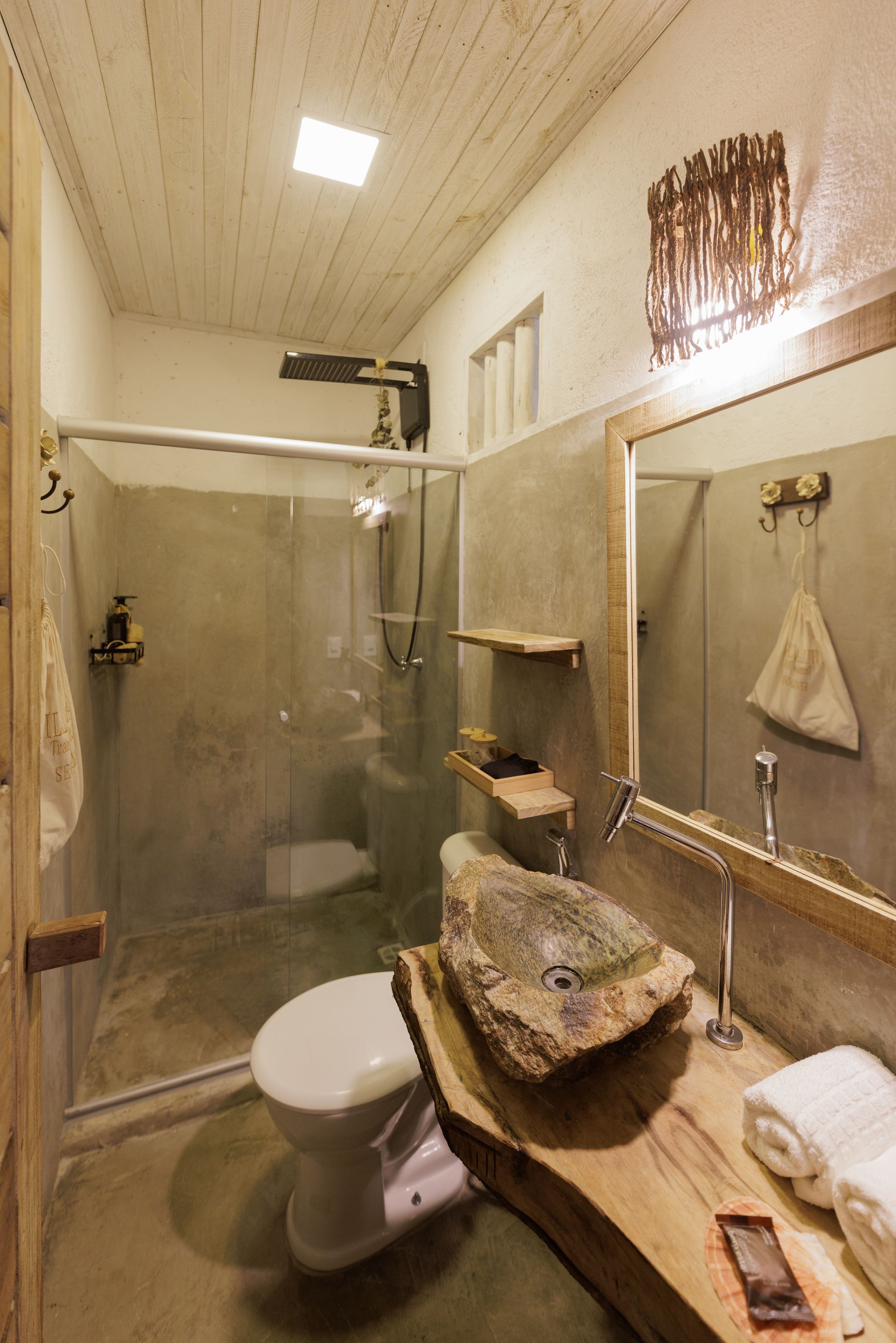 Nossa área compartilhada dispõe de uma sauna ecológica e ducha ao ar livre. Para refrescar-se e aproveitar o sol da Bahia, aproveite a nossa piscina com hidromassagem!